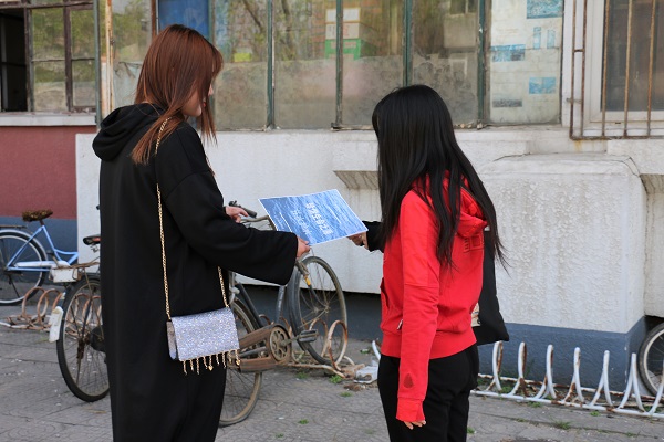 活动当天,志愿者们早早来到现场,通过发放宣传单,制作标语等方式,来向员工们讲解节水知识,通过宣传和倡导使节水意识深入到每个人心中。