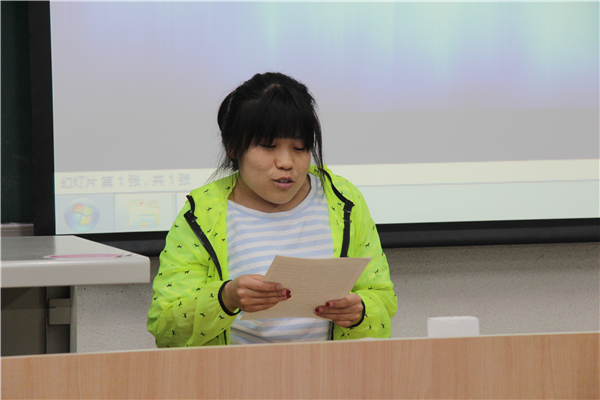本次班会也邀请到了14级工商管理专业的班长——孟宇飞学姐,她为我们提出了许多宝贵的建议,从一个“过来人”的角度给我们解释了关于工商管理这个专业学习道路上的疑问和不解,同时,作为学姐,她也不吝惜的把自己现有的复习资料贡献给大家,希望大家能在期末考试中考出好成绩。