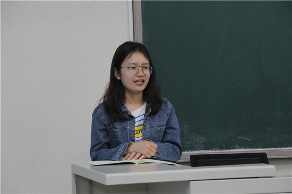 第四位上台发言的同学是优秀宿舍宿舍长陈淑杰同学,她身为宿舍长,能够起到宿舍学习的带头作用,调动起每一位宿舍成员学习的积极性,并且宿舍内部六位同学互帮互助,在自己擅长的学科上多帮助别人,她们能够做到宿舍六个人共同进步、共同向上。