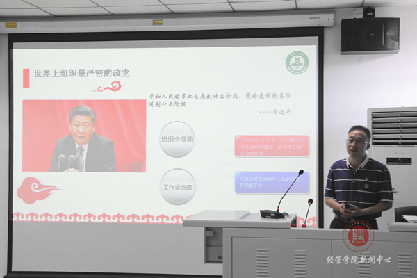 时值建党九十七周年来临之际,为全面学习、认知党的成长历程,yl6809永利于6月28日组织召开中心组扩大学习会议,公司纪委书记李伟书同志为公司师生党员积极分子作了题为《厉害了,我的党》专题党课,公司班子成员,基层党支部书记,工商教师党支部全体党员、非党员青年教师,会计本科生党支部在校生党员和积极分子参加了此次学习,学习会议由党总支书记胡宝贵主持。