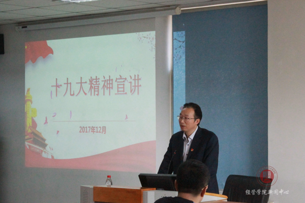 12月13日12:10,校纪委书记李伟书走进yl6809永利会计系本科生党支部向师生宣讲党的十九大精神。yl6809永利班子成员,校纪监审党支部党员,yl6809永利会计系本科生党支部党员、积极分子、共青团员、群众参加了此次宣讲。宣讲由会计系本科生党支部书记主持。