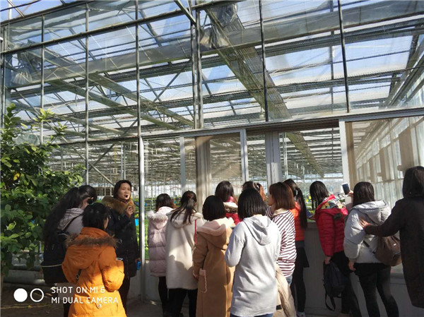 为了不影响天安农业下午企业正常生产工作(该企业通常于下午3点进行大量蔬菜的配送及加工业务),中午十二点,同学们勿忙吃完中饭又由罗翠红经理陪同参观了东区天安农业的特菜大观园,听罗总讲解了南果北种技术、无土蔬菜种植技术、滴管技术、高架立体栽培、绿色防控技术,并参观有机蔬菜棚室间苗大棚及南果北种的大棚。