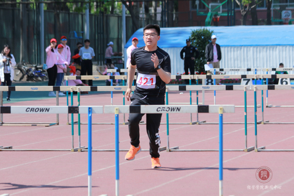 下午的第一场比赛是男子110米跨栏,林子琛同学发令枪响后,他迅速冲出起跑线。在面对1.2米的栏时他毫不畏惧,如麋鹿般跨过栏杆,最终在奋力的拼搏下取得了第一名的好成绩,同时,袁楷杰获得第三名的好成绩。