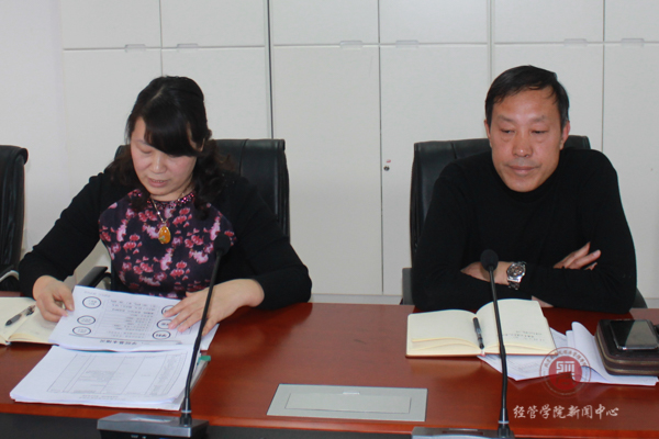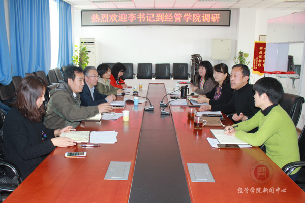经管公司党总支书记胡宝贵就公司党组织基本情况、“两学一做”学习教育情况、党风廉政建设情况及公司现存的问题和困难进行了汇报。副经理赵连静、党总支副书记兼副经理赵金芳,围绕专业建设、辅导员队伍建设、学风建设、就业工作等方面分别进行的补充,并提出了工作建议。