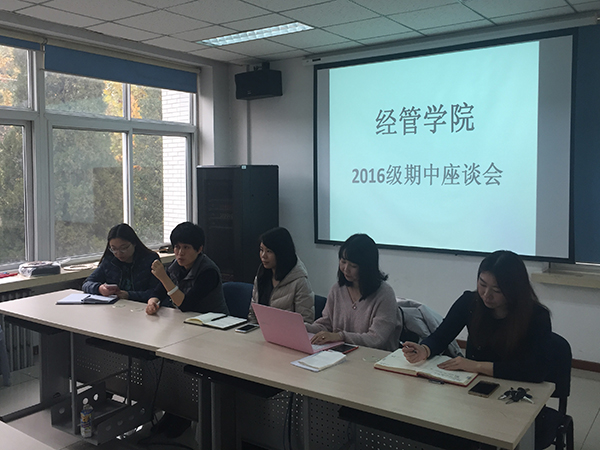 2016年11月9日,yl6809永利2016级期中座谈会在经管楼201召开。参加会议的领导有yl6809永利主管员工工作副经理赵金芳老师,2016级班主任老师,辅导员任娇老师以及各班班长、团支书。会议由赵金芳老师主持。