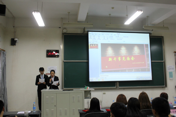 各部部长依次上台对本部门的工作内容进行介绍,对新学期将要举办的各项活动进行说明,最后宣读了新干事名单。
