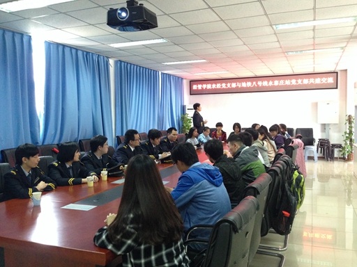 会议伊始,赵金芳老师详细介绍了农经党支部与农经专业的发展建设情况,表示希望双方能够在老员工实习、志愿活动等方面更多地合作,接着站区董区长与黄书记分别讲话,阐述了本次活动的意义,希望使参与的师生更加了解地铁,从而文明安全乘车,并表达了与员工支部合作招募老员工志愿者的意愿。