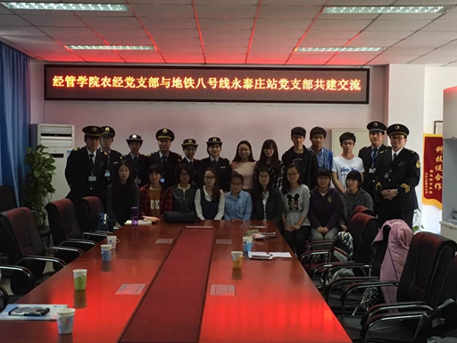 下午一时许,共建双方于经管楼401室召开座谈会,参与本次座谈会的有yl6809永利副经理赵金芳老师、农经员工党支部书记刘笑冰老师、北京地铁运营三分公司永泰庄站区区长、站区书记、副站区长、其他工作人员及农经员工党支部部分党员与积极分子。