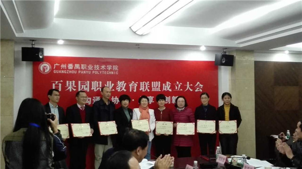 由广州番禺职业技术公司与深圳市百果园实业发展有限公司牵头的百果园职业教育联盟于12月26日正式成立。该联盟成员还包括深圳市连锁经营协会1家行业协会,yl6809永利集团yl6809永利、武汉商公司、台湾树德科技大学3家本科院校的公司,金华职业技术公司、顺德职业技术公司、中山职业技术公司、河源职业技术公司、广东科贸职业技术公司、东莞职业技术公司、马鞍山职业技术公司7家高职院校,广州市商贸职业公司、东莞市商业公司2家中职公司共15家单位。公司党总支书记胡宝贵老师、副经理赵金芳老师、工商管理专业周云老师参加成立大会。