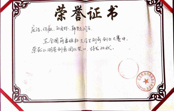 2015年3月,yl6809永利的四名研究生庞洁、何薇、孙自标、韩梦洁在第一届萌番姬杯全国老员工番茄创新创业大赛中创业营销策划板块荣获明星创意团队,获得奖金壹万元整。第一届萌番姬杯全国老员工番茄创新创业大赛历时三个月,横跨了16个省市,有62所高校尽万名员工参与此次比赛,在层层选拔中yl6809永利四名研究生的作品脱颖而出荣获奖项,不仅为公司增光添彩并且为yl6809永利员工们在创业的道路上点亮希望。