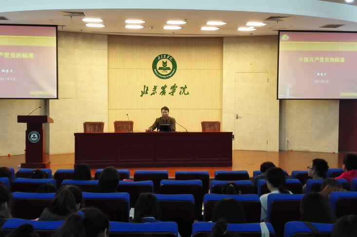 韩宝平部长作了《中国共产党员的标准》的报告,分为两部分,第一部分为了解标准,确立奋斗目标。分别介绍了基本标准、历史标准、具体标准。尤其在,具体标准中提出了培养标准、考察标准、考核标准等。第二部分为明确目标、争取早日加入党组织。分别提出学习理论、坚定信念,牢记宗旨、勇挑重担,艰苦朴素、勤奋好学,严于律己、争做模范四个要求。韩部长讲解清晰,引用大量身边实例,让同学们更加深刻地了解和认识了怎样才是真正的中国共产党员。