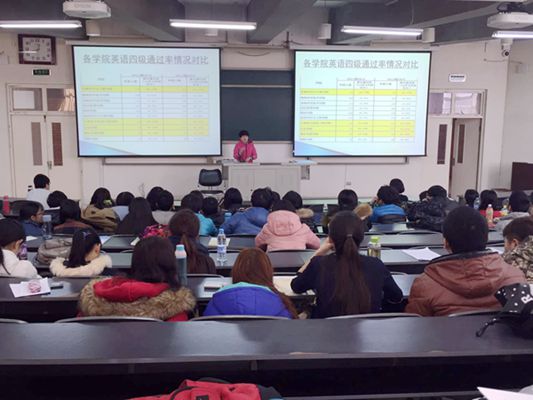 首先,赵老师给我们讲述了大学英语四级的重要性。英语四级是证实自己实力的有力凭证,是毕业后就业的敲门砖,也对自己日后学习、深造、生活有重要的影响。