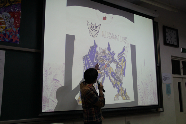 本次比赛共分为两个环节:一是参赛者按抽签次序上台介绍自己的作品,经过大家评选,取前六名;二是由嘉宾评审对前六名选手进行投票。在主持人详尽的介绍过比赛规则后,选手们依次上台展示参赛作品。选手们的天马行空的作品设计和充满正能量的设计理念赢得了观众们的阵阵掌声。