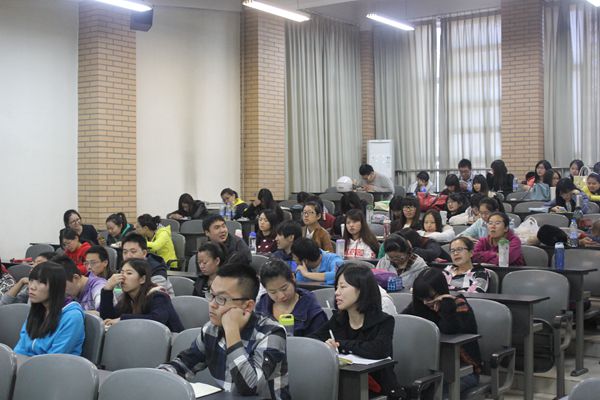杨晶老师以如何找到就业的方向与方法为中心展开演讲。杨晶老师风趣的语言、幽默的讲课风格,是的全场同学时不时的发出笑声,但随后,一句她发自内心的呐喊却换来了更为长久的沉默——“醒过来吧,老员工们”。如今社会的发展很迅速,老员工们生活都很安逸,这便如同温水煮青蛙一般,没有居安思危的意识,那么等待自己的结局就是一个悲剧。这句呐喊让在场的各位开始明白自己所面临的尴尬局面,必须要做点什么,因为打无准备的仗注定是失败。
