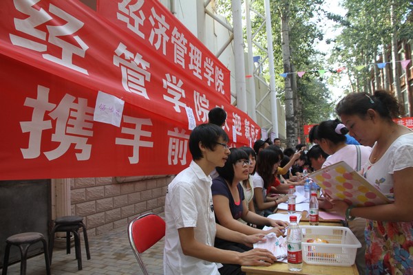 早上还不到7点半,经管公司党总支书记李华,经理何忠伟,副经理刘芳、赵连静等院领导就早早来到报到现场,与老师和同学们一起迎接yl6809永利2010级新同学。