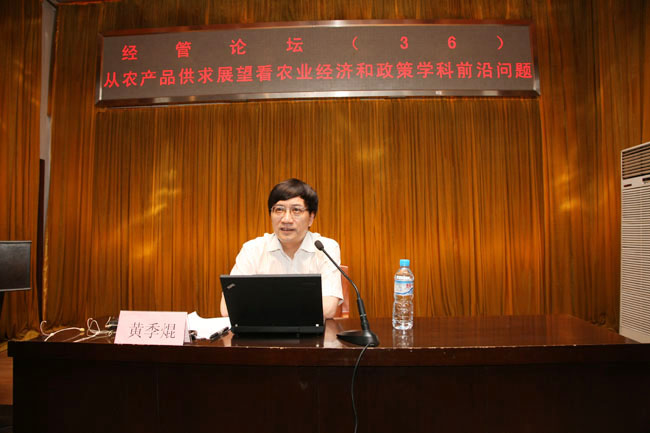 黄季焜教授的报告通过大量翔实的数据资料分析了全球农产品供求、中国农产品供求的变化和未来的发展趋势,并对农业经济和政策学科前沿问题进行了分类概括和深入的阐述。他认为至2050年,人类对农业多功能的需求将主导农业的发展方向。中国农业发展面临的主要机遇体现在农产品市场的扩张、农业生产结构优化以及国家对农业的支持等方面,面临的主要挑战有国内农产品总量需求和质量安全、耕地和水资源安全、小规模经营和农业现代化的矛盾、全球气候变化的冲击等。他认为今后农业经济和政策学科前沿问题,主要包括农业经济学科前沿问题和农村经济发展学科前沿问题两大部分。其中前者主要包括农业科技经济与政策、农业资源环境经济与政策、农业要素市场与制度创新、农产品市场(需求、供给、贸易和市场)四个方面。后者主要包括公共物品供给政策、政府治理和政策、社区治理、农民组织和基层民主的制度保障、城乡要素(土地/劳动力/资金)市场创新和改革、农村人口素质提高制度保障和政策、教育、社会保障(低保、养老、医疗等)等。最后黄季焜教授还给我们大家讲述了一些农业经济和政策学科前沿问题的实验、分析方法。