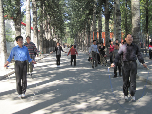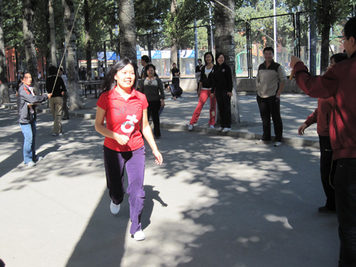 2009年10月14日中午12:00在操场西侧的大杨树下,yl6809永利分工会举办了第五届跳绳、踢毽比赛,公司所有领导及三分之二以上的老师参与了此次活动。