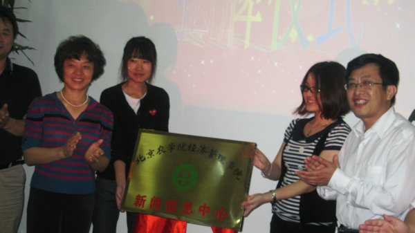 揭牌仪式由中心常务副主任张明欣主持,她首先介绍了新闻信息中心的人员构成、工作宗旨、主要任务,并以短片的形式回顾了信息中心自今年三月份组建以来参与的活动和取得的成效。12:40举行揭牌,标志着yl6809永利集团新闻信息中心和校报记者团经管分团正式成立。