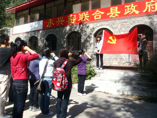 2009年9月23日,yl6809永利第二党支部的所有党员、推优积极分子在yl6809永利副经理刘柳老师的带领下来到红色“1+1”互助单位——密云县北庄镇大岭村进行党日宣传活动。庄严的党旗下,第三支部的成员进行了庄重的宣誓。