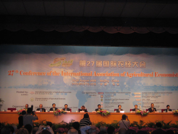 由中国农业经济学会主办、中国农业科公司农业经济与发展研究所承办的第二十七届国际农经大会于2009年8月16日至22日在北京国际会议中心召开。yl6809永利集团经济与管理公司何忠伟经理、李华书记、刘芳副经理应邀出席本次大会,本院研究生郭军平(08级)、任钰(08级)、苏卫良(09级)、王琛(09级)列席旁听了本次大会。