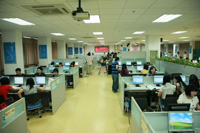 在文科实践中心赵学凯主任的引领下,我们重点观摩了“现代服务业综合实训”课程的组织实施。该课程以现代企业运营为核心,在企业经营过程中与现代服务业如工商、税务、海关、银行、保险、审计、咨询等各部门发生的业务联系与经济往来,模拟仿真现代服务业的真实环境,为经济管理类各专业员工搭建现代服务业实习大平台,使各专业之间进行有效整合。实现具有不同专业背景的员工在学习完各专业课程之后,走向工作岗位之前有一个全面触摸现代服务业的核心业务环节和功能的机会,并通过企业业务流程模拟竞争,使员工在企业真实的业务流与信息流中体会现代企业经营与现代服务业的内在联系。并通过知识的构建与反馈,使所学各专业知识得以融会贯通,从而获得现代服务业的更深层次的认识,为走向社会做好知识与心里准备。