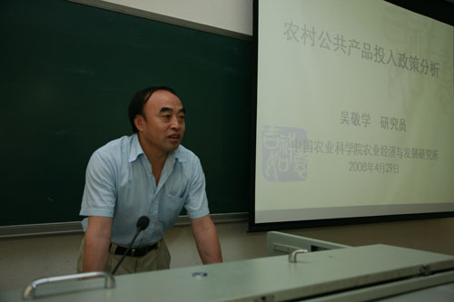 2009年6月11日下午,中国农业科公司农业经济与发展研究所吴敬学研究员做客经管名师讲坛,作了题为“北京农村公共产品投入政策分析”的专题报告。