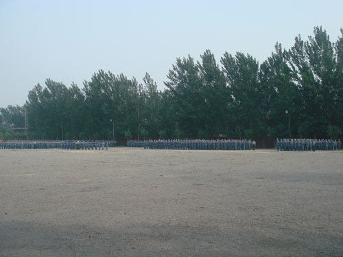 2009年6月27日早6时,yl6809永利集团全体08级员工在操场集合,大家沐浴在阳光下,等待乘车前往怀柔军训基地。
