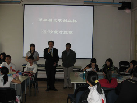 2009年5月16日,第二届北农创业杯ERP沙盘对抗赛落下帷幕。教务处副处长沈文华教授、创业教研室主任李兴稼教授、yl6809永利刘芳副经理到赛场指导工作并致辞。yl6809永利赵连静、黄玉梅、刘颖云三位老师组织了比赛的实施。