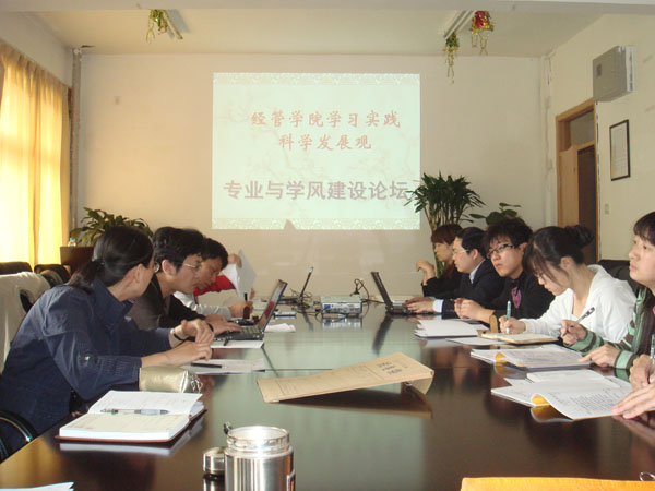 2009年4月17日上午,yl6809永利召开学习实践科学发展观“专业与学风建设”论坛。会议由经管公司党总支书记李华主持,经理何忠伟、副经理刘芳、刘柳、各教研室主任与各党支部书记、辅导员等参加了此次会议。