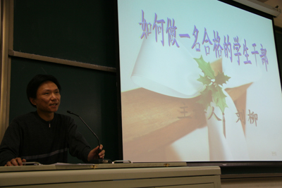 2007年11月1日第二期经贸系员工会成员培训系列讲座“如何做一个合格的员工干部”在教B-202拉开帷幕。