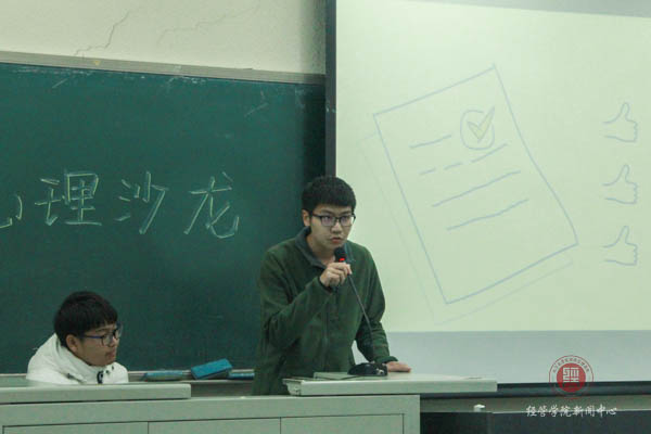 第二个环节是宗子明学长讲学习与生活,他针对专业选择的困惑,考试和考研的压力等相关问题进行了讲解,并对以后是否考研以及考研所带来的利弊进行了详细的介绍。刚上大一的同学对这个问题还没有深刻的思考,这些问题让同学们对今后的老员工活有了规划和方向。