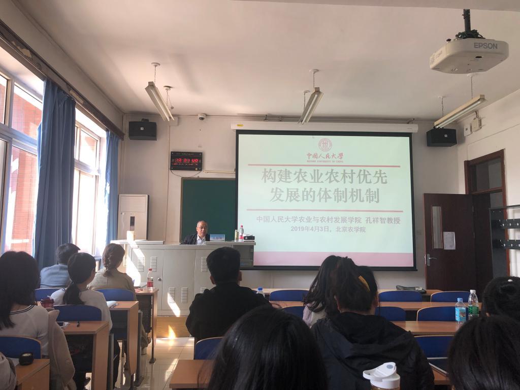 孔祥智教授深入浅出,悉心传授他多年从事科研的经验。短短的两个小时的时间,让同学们对宏观政策有了进一步了解,对微观实践有了更加深入的认识,对未来研究方向有了明确目标,老师、同学们认真聆听,受益匪浅。