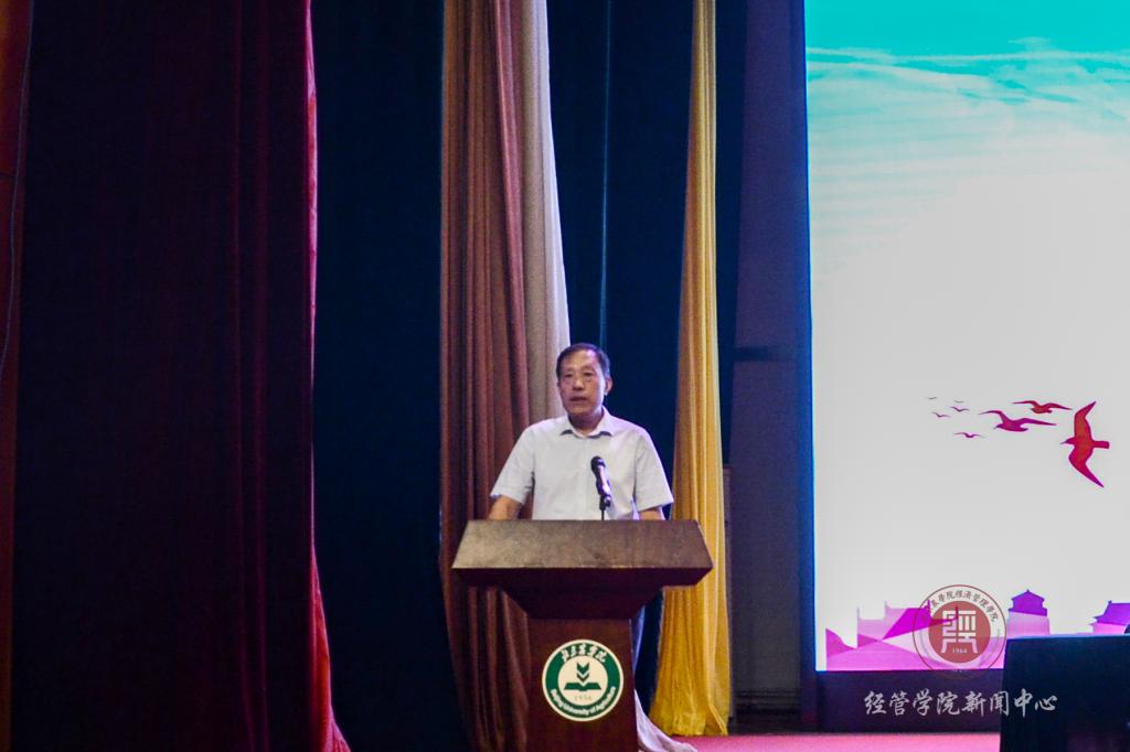 最后,经管公司党总支书记胡宝贵教授进行了讲话。胡宝贵老师从修德、知崇、笃行等三方面给同学上了一课,给了同学们具体的建议。