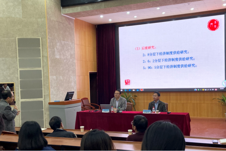 最后,老师和同学与傅教授就经济学分工立体化进行热烈探讨,得出总结“经济发展高质量,分类分层全发展,分层管理适配,施策优效才精准。”的28字真言。