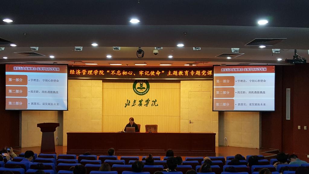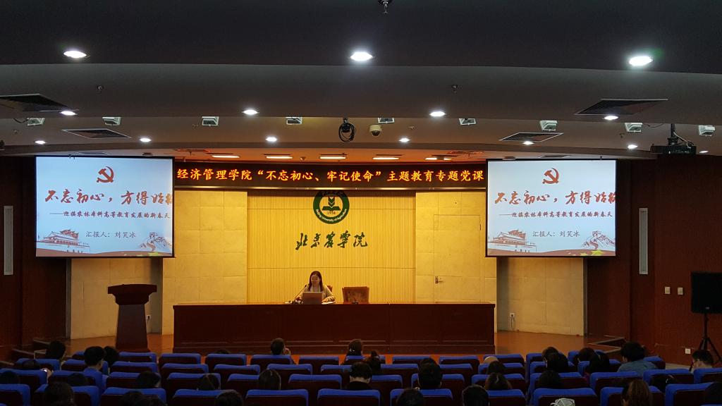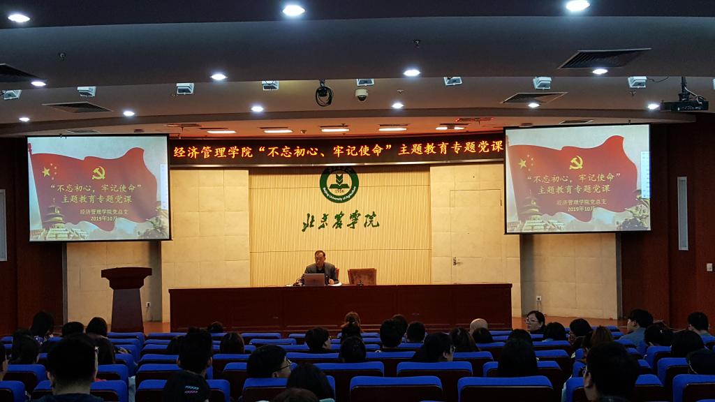 根据校院两级主题教育工作部署,2019年10月23日下午yl6809永利在图书馆报告厅开展“不忘初心 牢记使命”主题教育专题党课。经管公司党总支书记胡宝贵老师,党总支副书记、经理刘芳老师,党总支委员、教学副经理刘笑冰老师,党总支委员、科研副经理唐衡老师为全院200余名师生党员、入党积极分子讲授“不忘初心、牢记使命”主题教育专题党课。