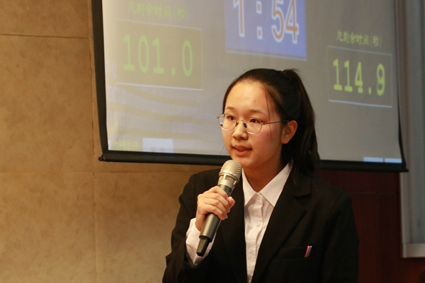 辩论赛正式开始。首先双方一辩分别就自己的辩题进行了立论陈词,双方一辩分别开宗明义,阐述自己的观点。在随后的对辩环节中,双方争锋相对,现场气氛迅速升温。随后大赛继续进行,进入自由辩论环节赛场气氛紧张热烈,双方辩手你来我往,侃侃而谈秉将比赛气氛再次推向高潮。在结辩环节,反方四辩总结了正方的观点并进行了针对性的质疑,不断使用犀利的语言攻击对手的薄弱环节,而正方四辩稳扎稳打地阐述了己方的观点。