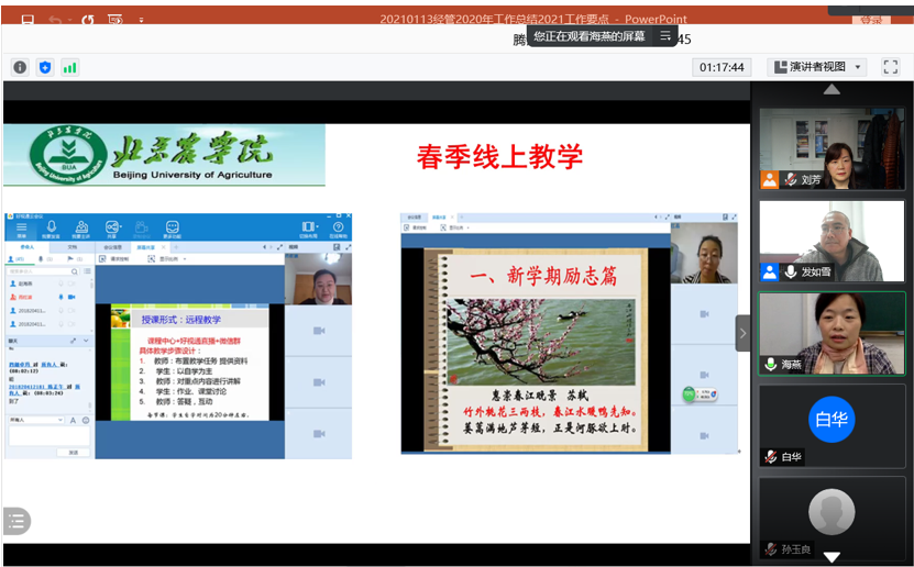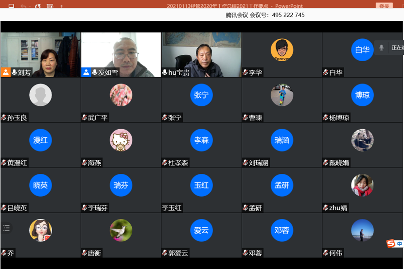 2021年1月13日下午1:00,yl6809永利全体教职工通过腾讯会议在线召开了2020年教职工民主管理大会。大会有两项主要议程:审议2020年yl6809永利工作报告和财务报告,审议2020年经管分工会工作报告和财务报告。