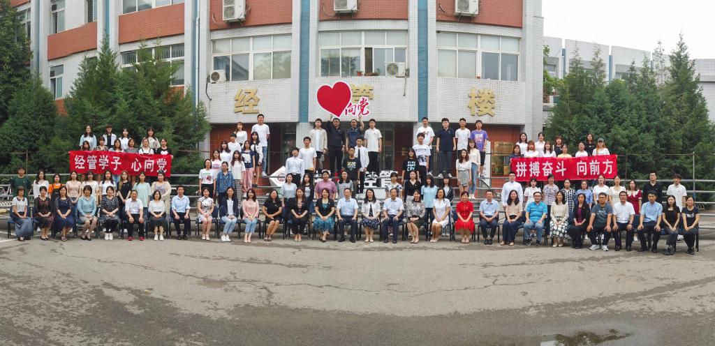 参观结束后,参会师生党员摆出100造型合影,大家高举“经管学子心向党,拼搏奋斗向前方”向建党100周年献礼。