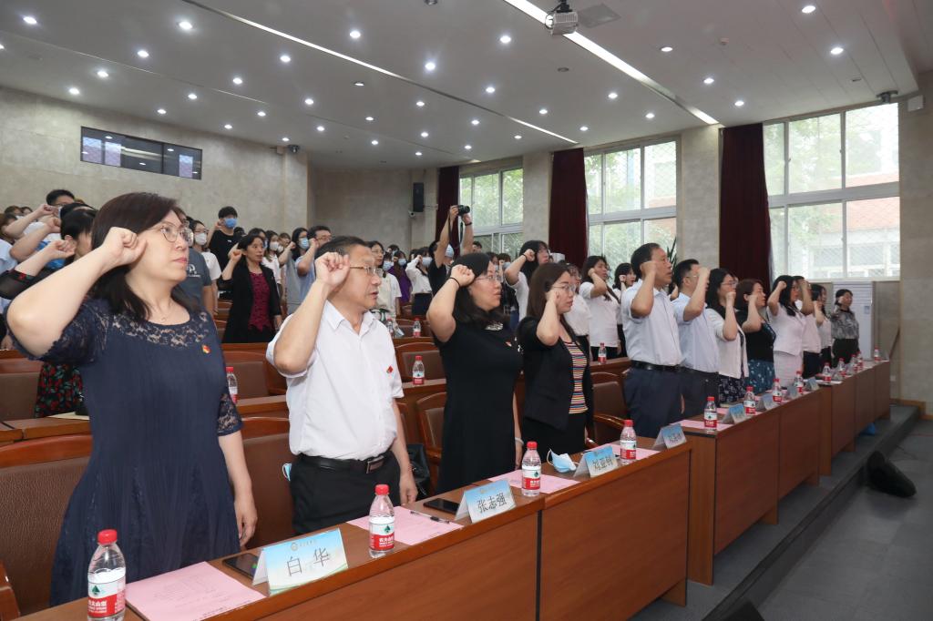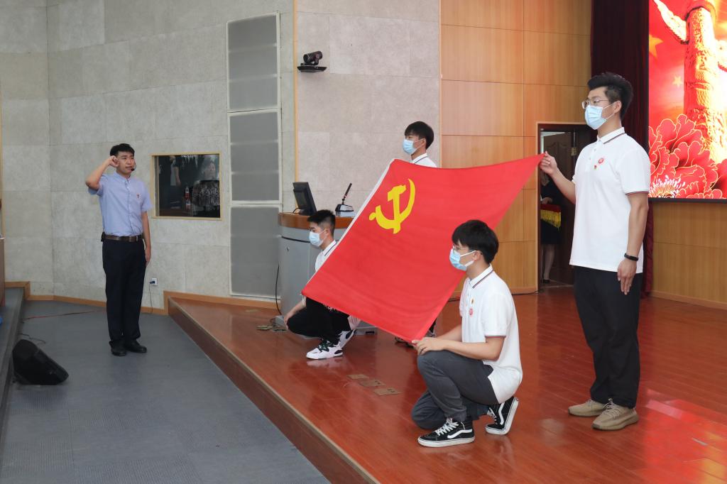 伴随着《国歌》激昂的曲调,会议正式开始。面向鲜红的中国共产党党旗,在领誓人吴曈的带领下,新党员面对党旗庄严宣誓,老党员重温了入党誓词。大家以坚定有力的宣誓声,表达不忘初心、砥砺奋进的信念及决心。