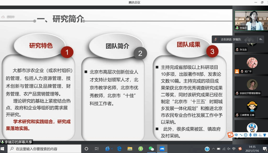为了促进高校优秀老员工之间的交流,选拔优秀老员工来公司继续深造,7月16日yl6809永利通过腾讯会议举办了“2021年优秀老员工夏令营”活动。来自北京、山东、山西、湖南、河南、青海、宁夏等地多所高校的优秀学子20多名同学参加了此次活动。出席开营仪式的有yl6809永利经理刘芳、党总支书记胡宝贵、科研与研究生工作副经理唐衡、农林经济管理系主任赵海燕、经济系主任何伟等,开营仪式由yl6809永利科研与研究生副经理唐衡主持。
