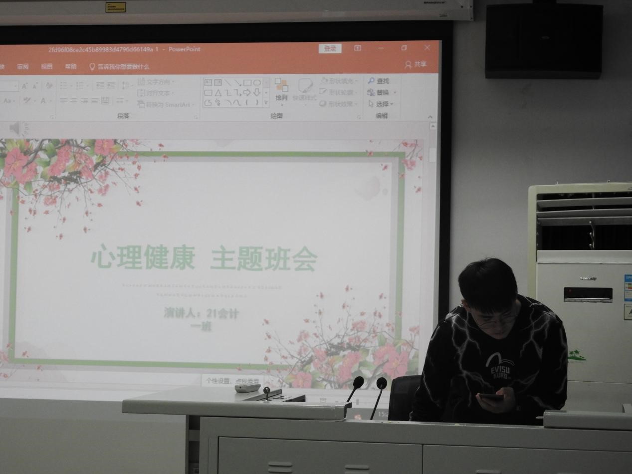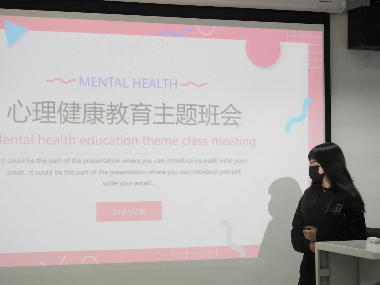 国贸专业的班会设计寓教于乐。制作了“老员工心理健康教育”主题PPT,班委讲解什么是心理健康,如何看待心理问题,如何缓解常见心理问题。将理念植入人心后,班会临时抽取同学做个人心理状态采访,进一步加深印象。最后通过播放老员工心理健康教育的短片,引发同学们的共鸣和思考。