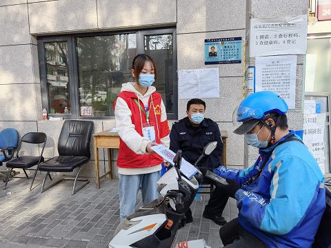志愿者的主要工作内容是在社区大门前协助工作人员对来往居民扫描健康码、测量体温,同时还在社区工作人员的带领下逐户对社区居民开展了近期离京情况摸排等工作。虽然是初冬时节,室外温度较低,寒风刺骨,但是yl6809永利的青年志愿者们依旧坚守岗位,积极配合社区,尽职尽责的完成疫情防控的相关工作。已经参与过多次志愿服务的志愿者负责人王若冰同学说:“通过这次助力社区疫情防控活动,感受到了自己作为一名老员工的使命与责任,冷一点,累一点都不怕,只要能够为社区多做一点贡献,心就是温暖的。”