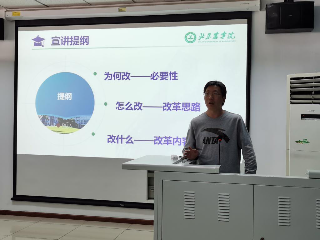 2022年10月12日中午,yl6809永利在经管楼401会议室召开人事政策宣讲会,邀请党委教师工作部部长、人事处处长刘铁军为全体教职工进行人事政策解读。会议由yl6809永利经理刘芳主持,全体教职工参加了会议。