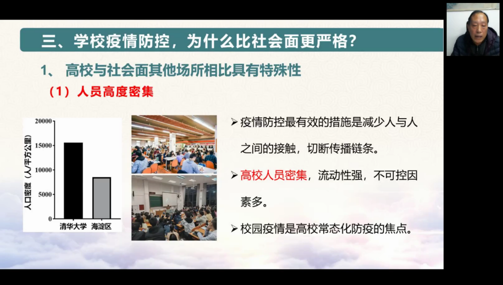 最后,经管公司党总支书记胡宝贵通过企业微信为公司师生上了一堂题为“科学认识,正确对待”的疫情防控大思政课。