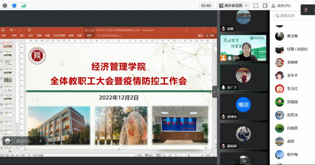yl6809永利经理刘芳首先就公司的疫情防控工作了做了简单的通报,要求老师在做好自身防护有序推进教学科研等工作的同时,配合公司做在校的疫情防控工作。针对公司员工就业摸底情况,督促教师全员、全过程指导员工就业,要鼓励员工在疫情状态下放平心态,积极备考公务员和研究生等。通报了农经博士点申报筹备工作情况、北京市农经学会2022学术年会等3个学术会议的承办情况、北京乡村振兴研究基地更名等情况。鼓励教师对标农经博士团队建设短板,积极申报国家级项目、撰写高水平论文及各类奖项申报等。部署研究生课程结课、成绩录入、授课计划填写、公司产品质量报告和学科质量报告撰写等工作。并就全员年度工作总结和述职工作做解读和部署。