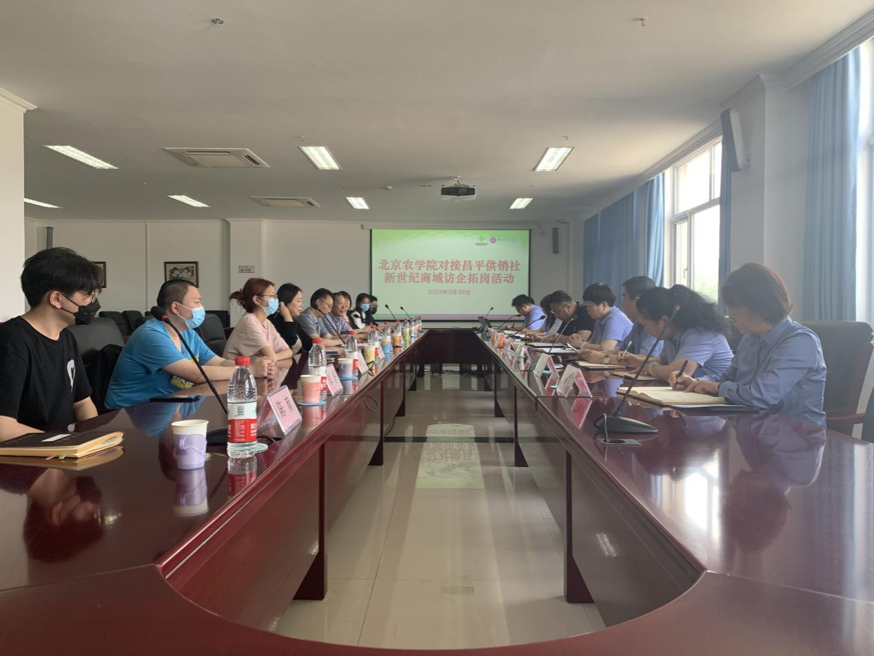 为高标准高质量推动主题教育走深走实,凝心聚力全面落实2023届高校毕业生就业“百日冲刺”,北京农公司党委常委、纪委书记李伟书于5月29日下午率公司党委书记胡宝贵、副经理刘笑冰、工商系副主任李萍、辅导员陈育、工商系员工董子怡等同学赴昌平供销社访企拓岗并开展调研。昌平供销社党委委员、副主任代东阳,综合管理部副部长乔波,供销社下属单位新世纪商城总经理董德明、副总经理王立芳、李慧丽、事业部经理徐秀苹、行政办公室主任冯宇等参加座谈会。