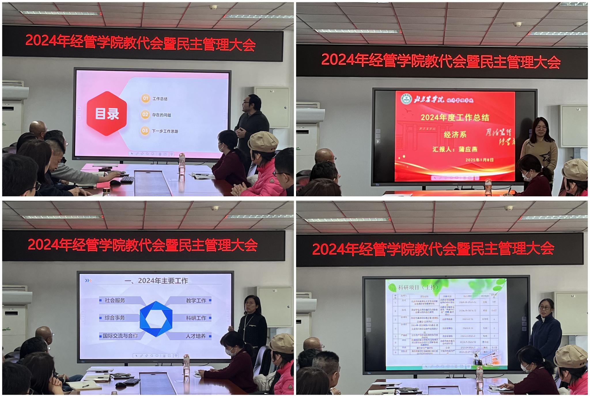 公司党委副书记、经理刘芳作公司年度工作总结报告和财务报告,严继超作公司工会工作报告和财务报告,陈跃雪教授作公司教学督导工作报告,各系主任汇报了本单位工作。