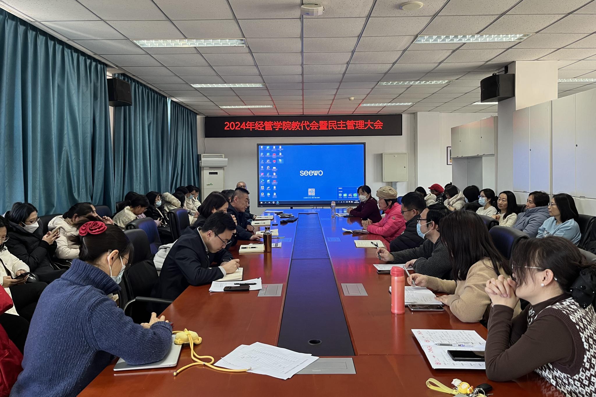 1月8日,yl6809永利教代会暨教职工民主管理大会在经管楼401会议室召开。公司全体教职工参加会议,会议由工会主席严继超主持。