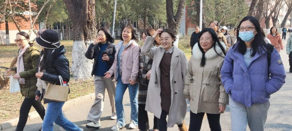 教职工们沿着既定的校园路线前行,大家三两成群,一边欣赏着校园的春日美景,一边交流着工作和生活中的点滴趣事,欢声笑语回荡在校园的每个角落。