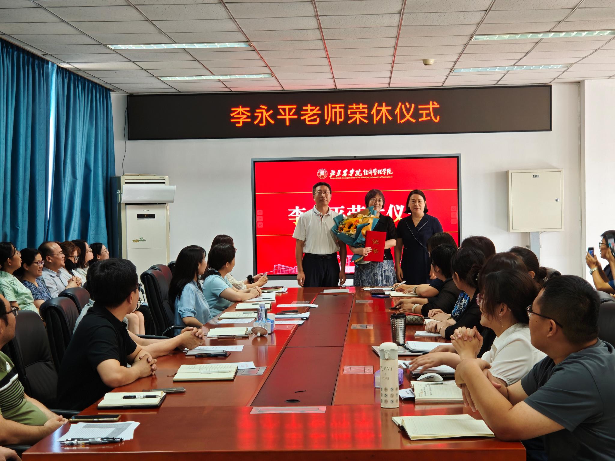 刘铁军发表致辞,回顾了李永平老师数十年如一日的坚守,以渊博学识启迪智慧,以高尚师德润泽心灵,以仁爱之心培育英才,为公司的建设发展作出了重要贡献。代表公司向李永平老师致以崇高敬意与美好祝愿,并颁发荣休证书。现场掌声经久不息,表达了全院教师最诚挚的感谢与祝福。